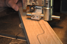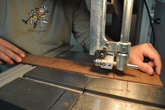 Next, I cut the shape on the bandsaw. Cutting as close to the line as you can without going over is important, but more important is to have a smooth cut with no sharp deviations. This will make for a much quicker, and easier, final smoothing of the shape.